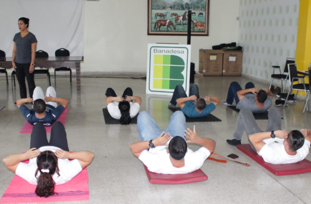 Comayaguela.- Empleados de las diversas gerencias del Banco Nacional de Desarrollo Agrícola BANADESA, especialmente personal de aseo y motoristas, participaron activamente en la capacitación denominada » Escuela de Espalda», llevada a cabo durante dos días en una jornada teórica y otra práctica. El evento formativo, fue bien recibido para el bienestar físico de los trabajadores.